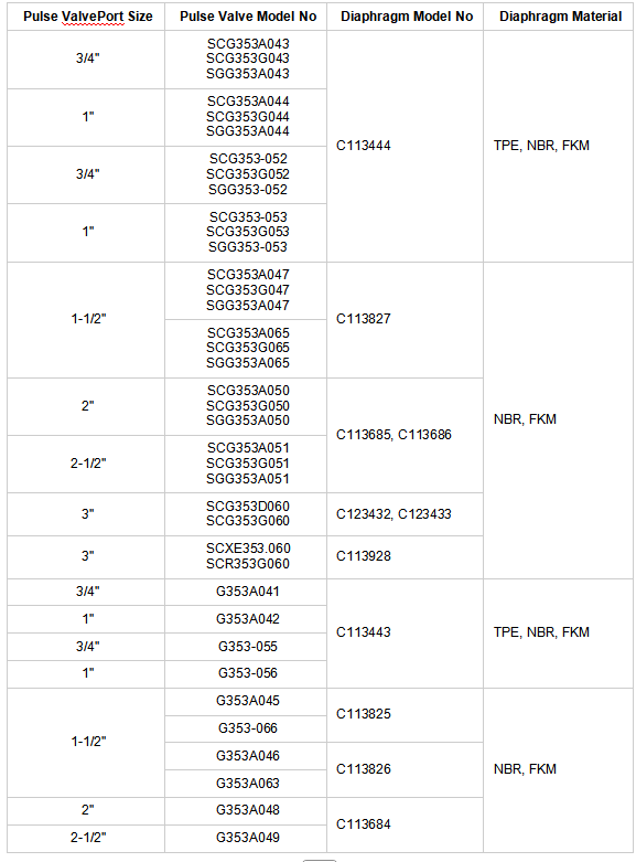 A1: C113684-settet passer til 2-tommers og 2,5-tommers pulsventiler. Bekreft ventilstørrelsen før kjøp for å sikre perfekt passform. For andre spesifikasjoner eller serier, se bestillingskodediagrammet nedenfor for referanse.
