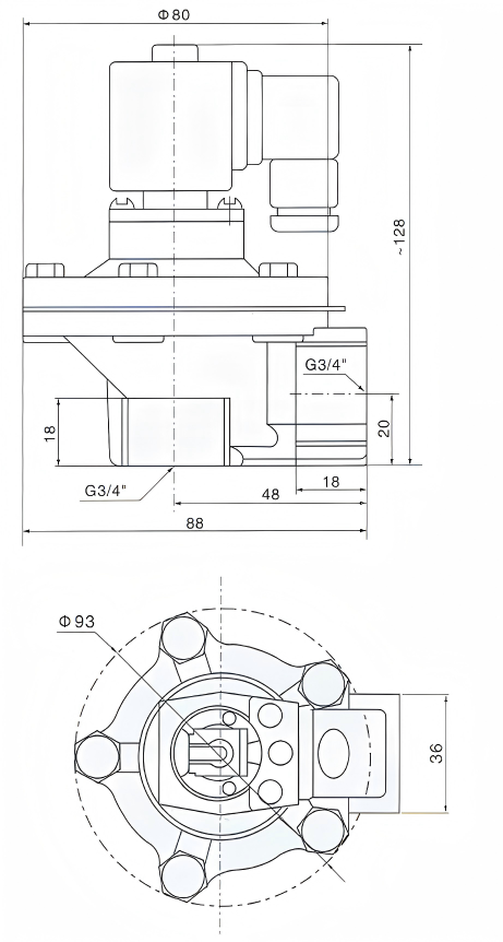 DMF-Z-20 er en rettvinklet elektrisk pulsmagnetventil. Dens strukturelle egenskaper er som følger: